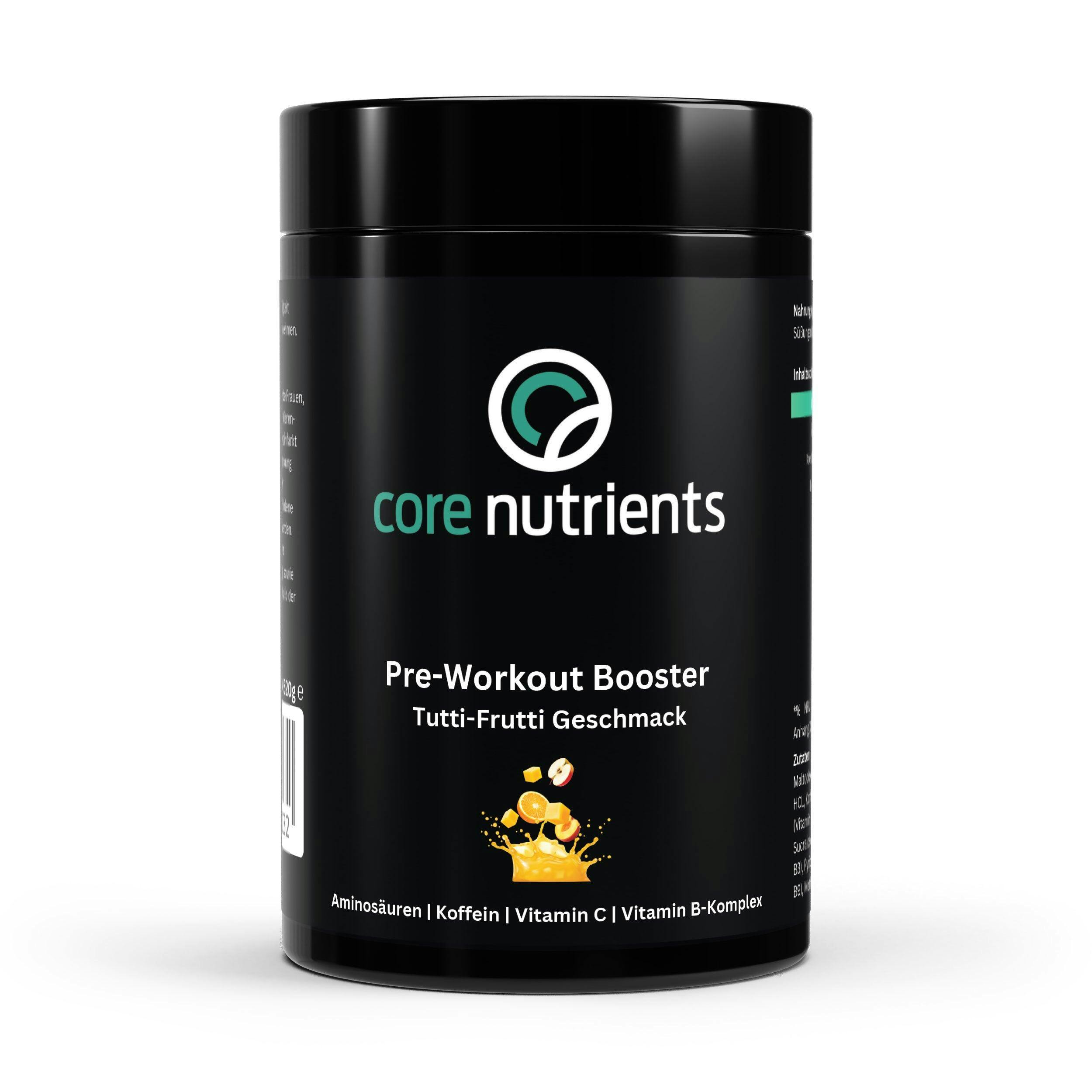 Maltodextrin, Beta-Alanin, Kreatin Monohydrat, L-Arginin HCL, Koffein, L-Tyrosin, Zitronensäure, L-Ascorbinsäure (Vitamin C), Aroma, Süßungsmittel: (Acesulfam-K, Sucralose), Riboflavin (Vitamin B2), Nicotinamid (Vitamin B3), Pyridoxal-5-Phosphat (Vitamin B6), Folsäure (Vitamin B9), Methylcobalamin (Vitamin B12)